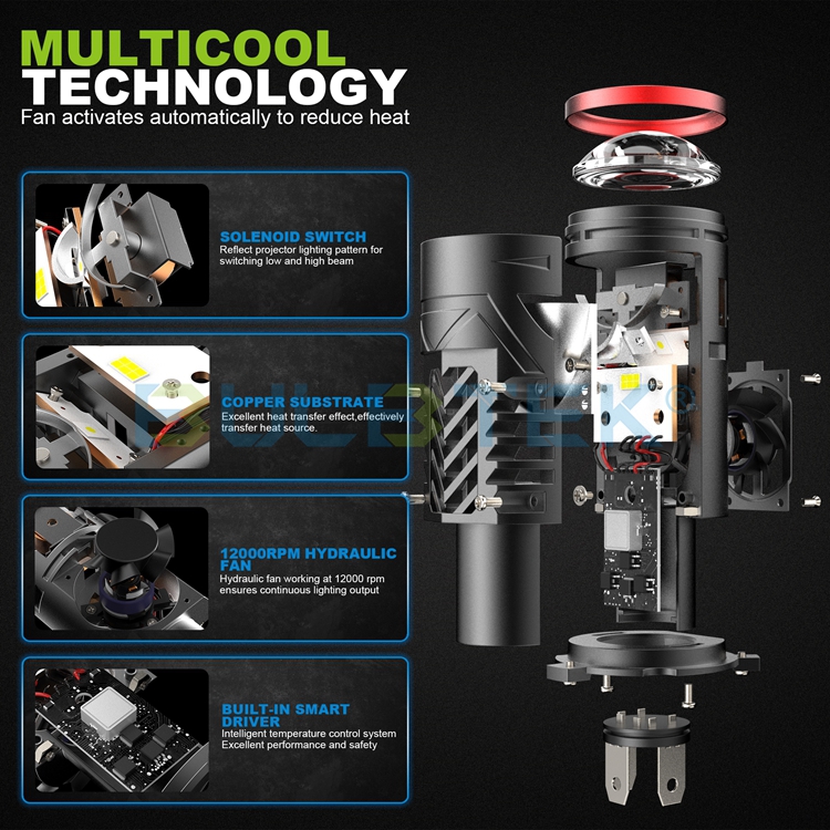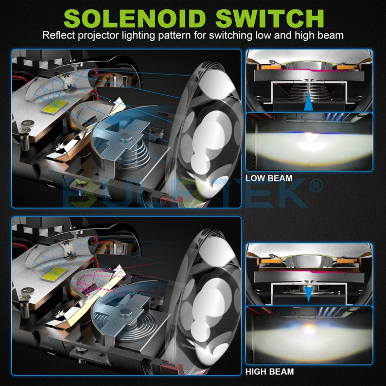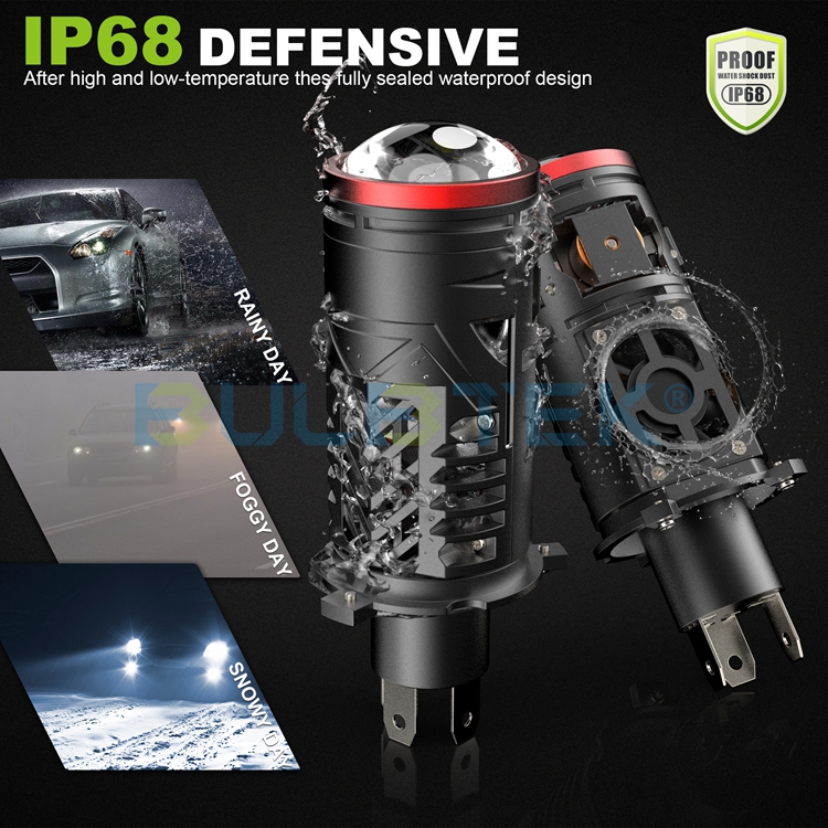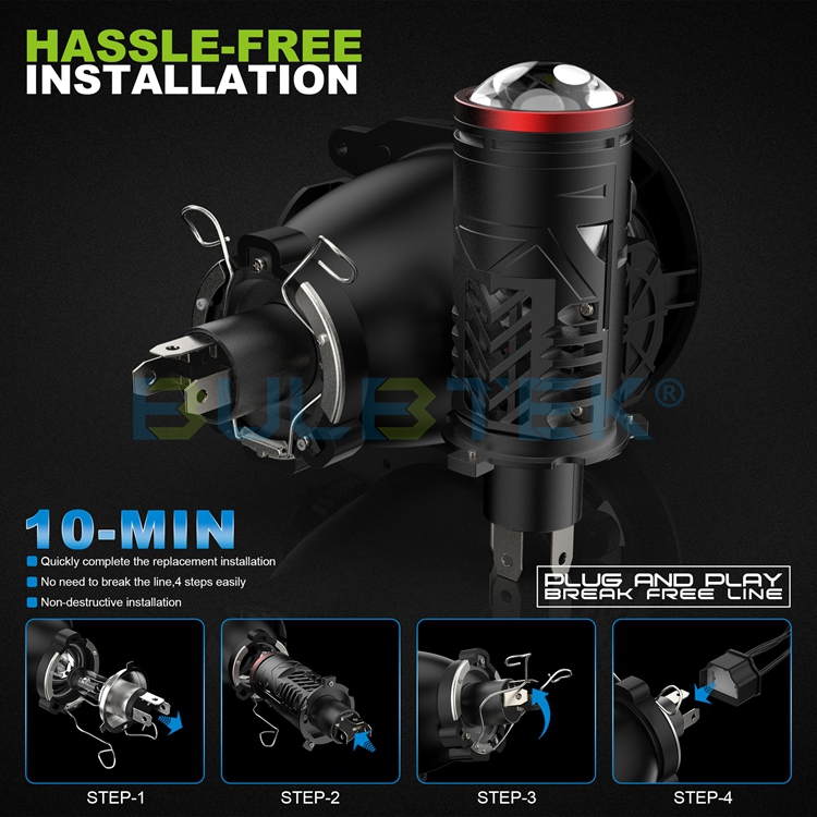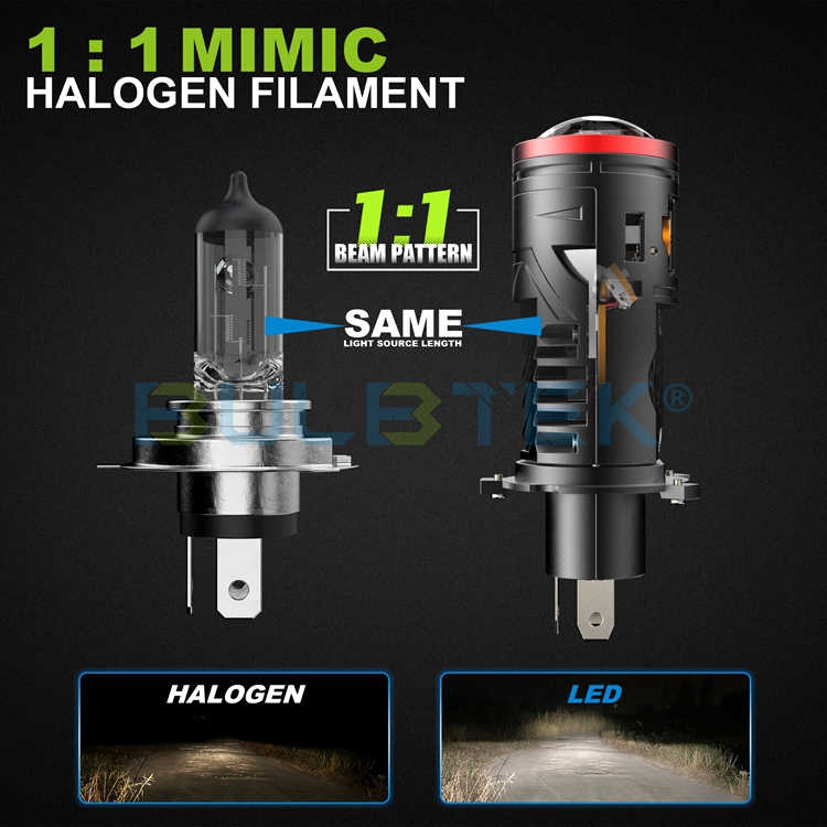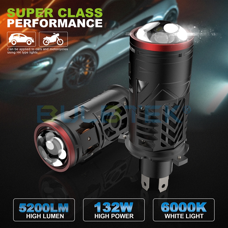 BULBTEK AM29 Mini LED Projector Lens 132W 5200LM H4 Car Light Solenoid Switch LHD RHD FLAT Plug and Play Motorcycle Dual Lens