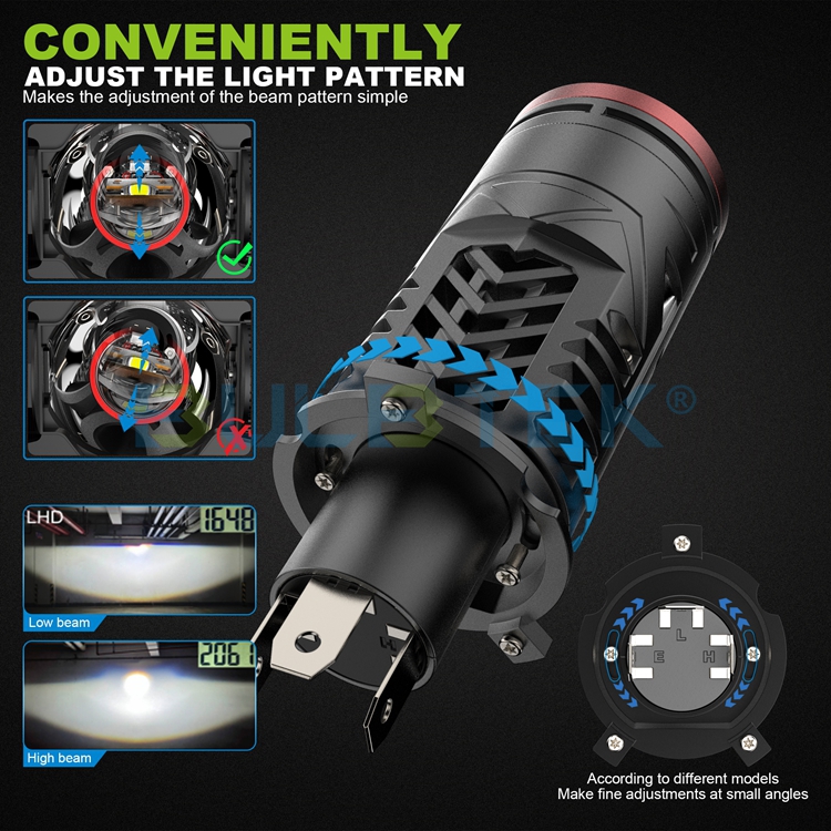 3. Lighting pattern: low beam+ high beam (reflect projector, solenoid switch), LHD / RHD / FLAT