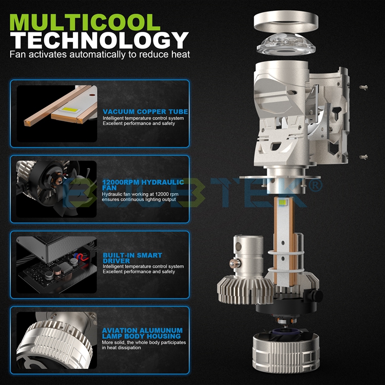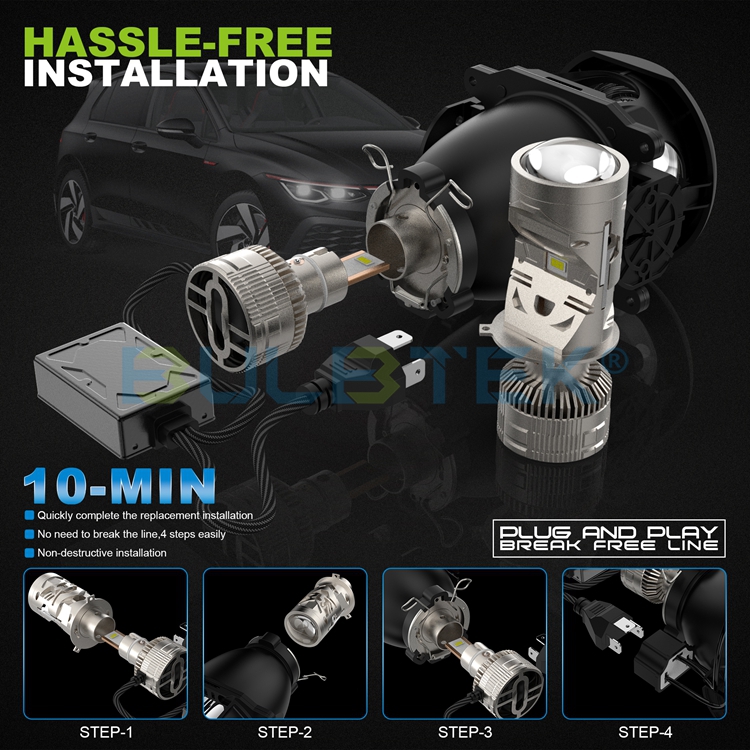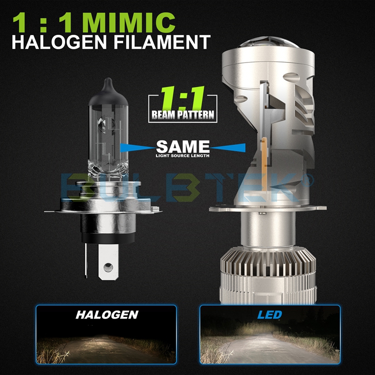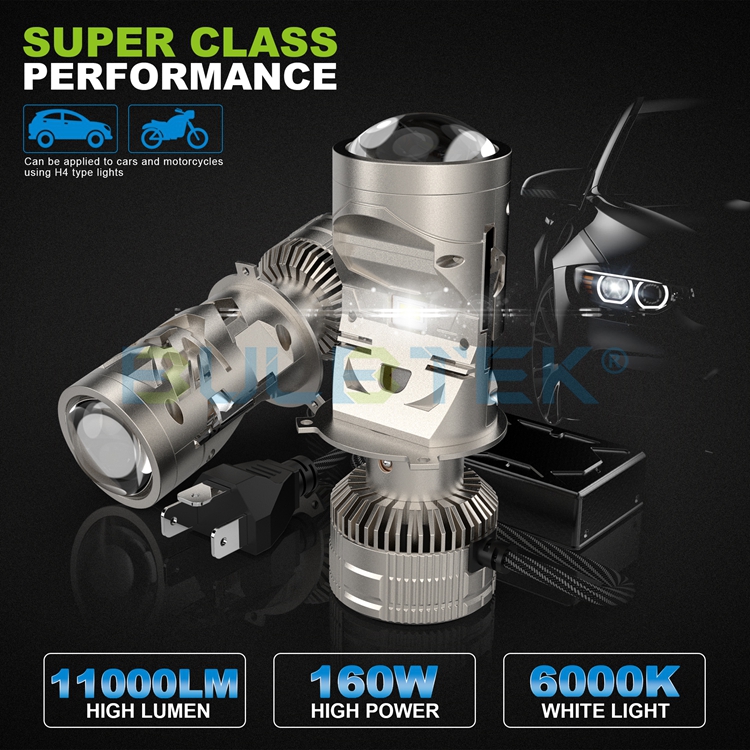 BULBTEK AM28 Super Bright MINI H4 Fan Cooling 160W 11000LM Car High Low Beam 5500K 6000K Motorcycle Headlamp LED Projector Lens